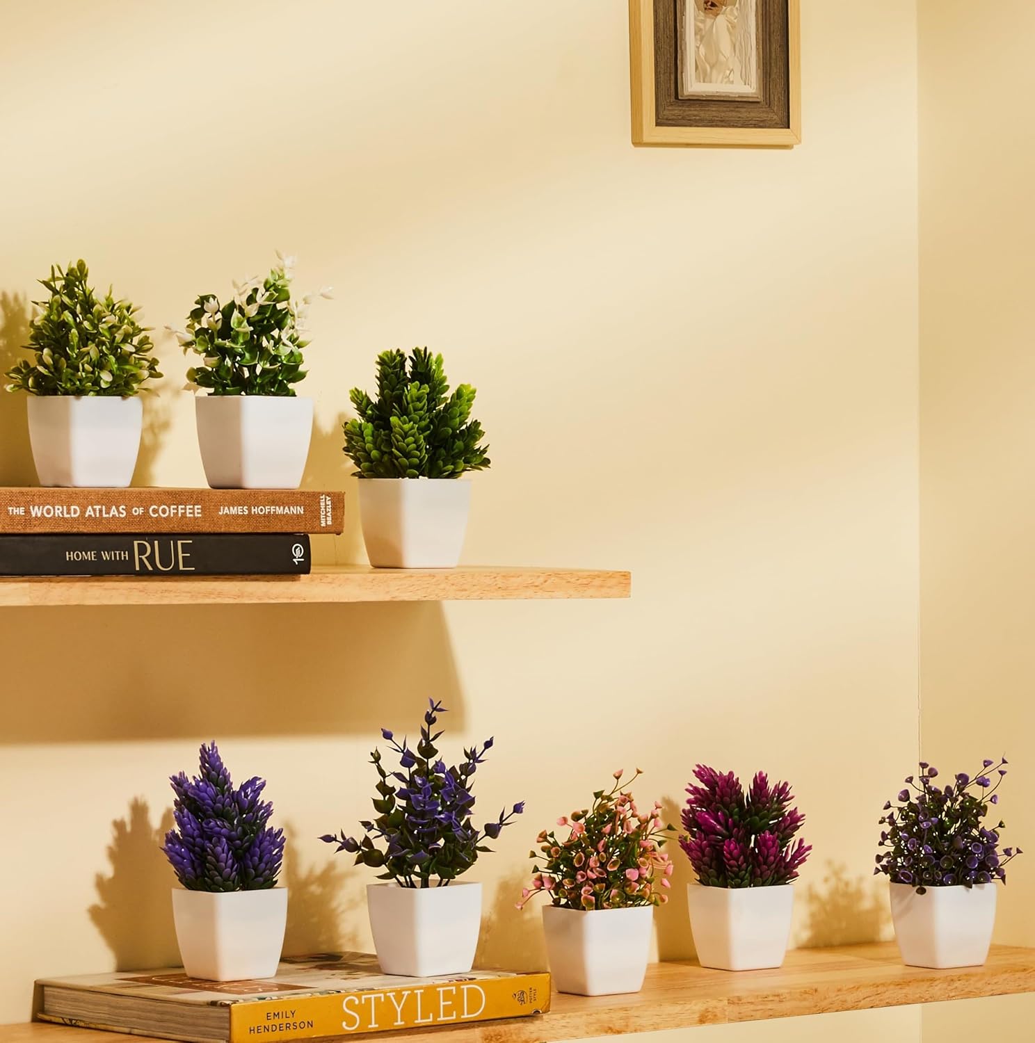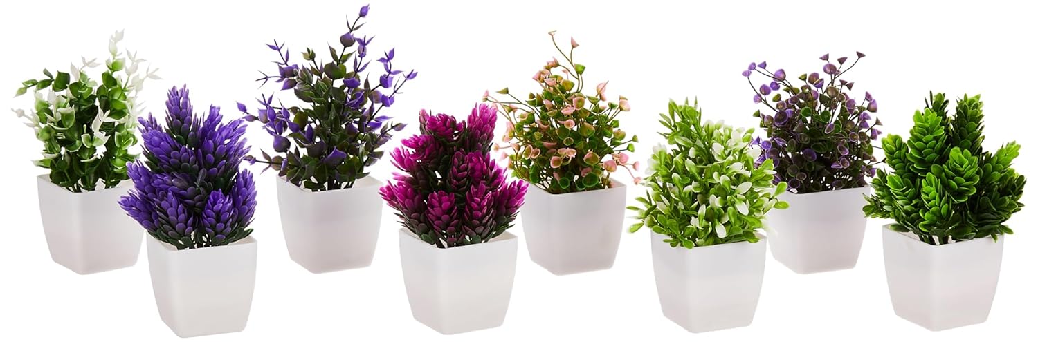 amazon basics Artificial Plants with Pot|Realistic Looking| Multi Variety |Durable Plastic | No Maintenance | Home Decor | Dimensions: 5 cm X 13 cm (Pack of 8)