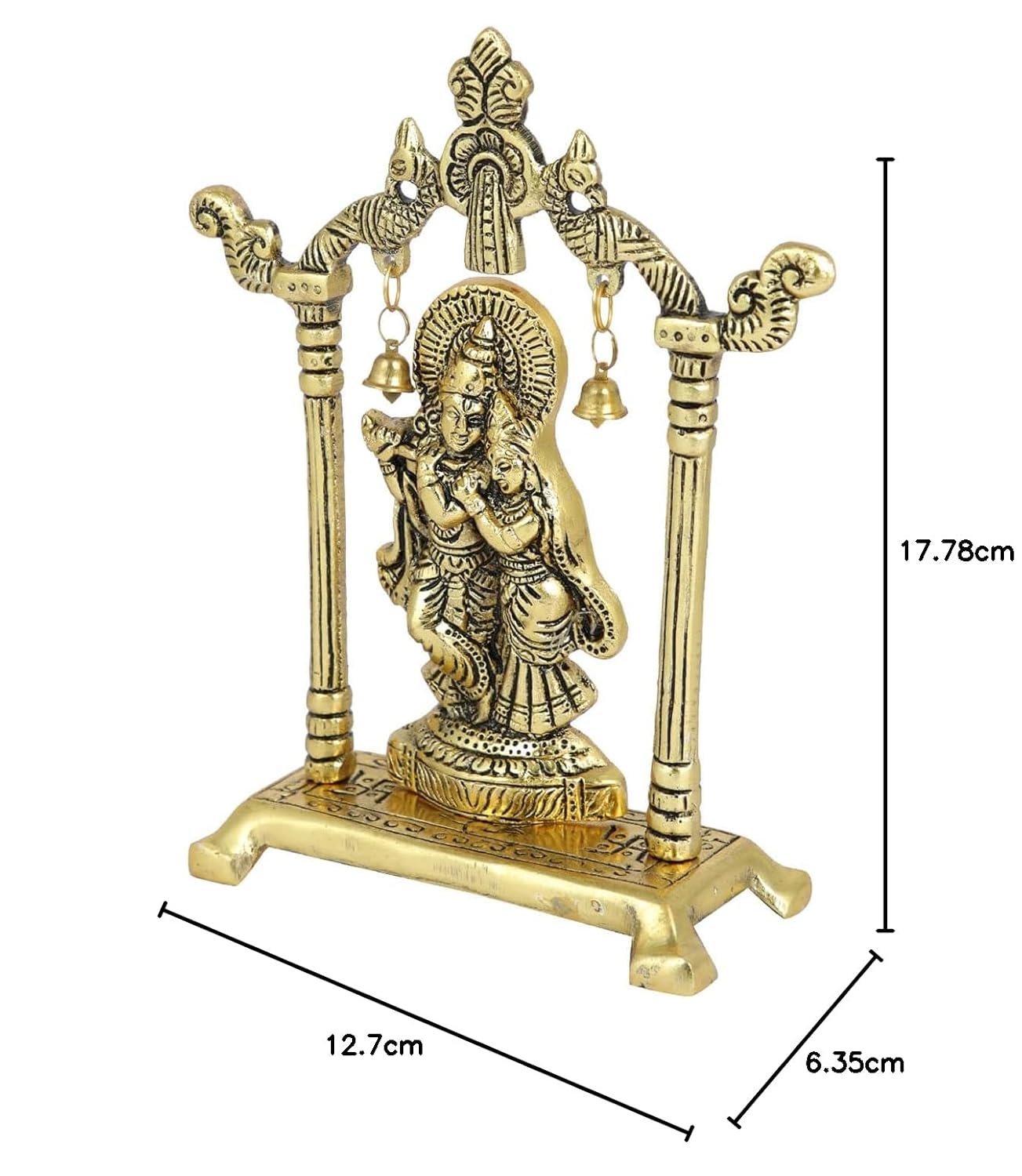 Made of high-quality metal for durability and longevityExquisite design and attention to detail capture the essence of Radha and KrishnaPerfect for puja, meditation, and as a decorative pieceIdeal for gifting on special occasions such as weddings, housewarming, or festivalsCreates an ambiance of devotion and love, bringing positivity and tranquility to your living space