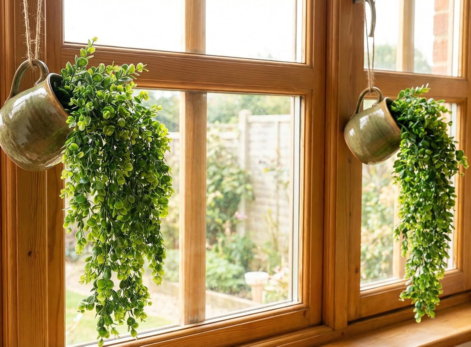 The artificial hanging plants outdoors have iron wires built in the stems, so they are sturdy and bendable. If a little piece fell off you just put it back on. The fake hanging ivy plant can be easily organized and fixed on hanging baskets, wall pots, wood boxes, outdoor containers, hanging pots and fences.