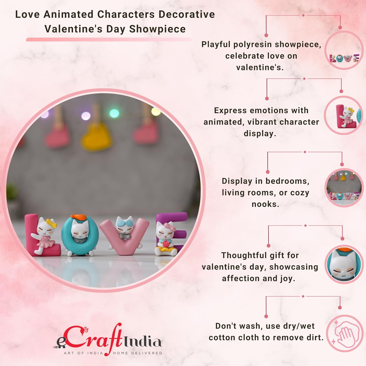 This showpiece for gift is not only a great decorative item for your bedroom or living room but also an excellent gift for Valentineâ€s Day, anniversaries, birthdays, or housewarming parties. Surprise your loved ones with this lovely Valentine’s Day gift for girlfriend, boyfriend, husband or wife.