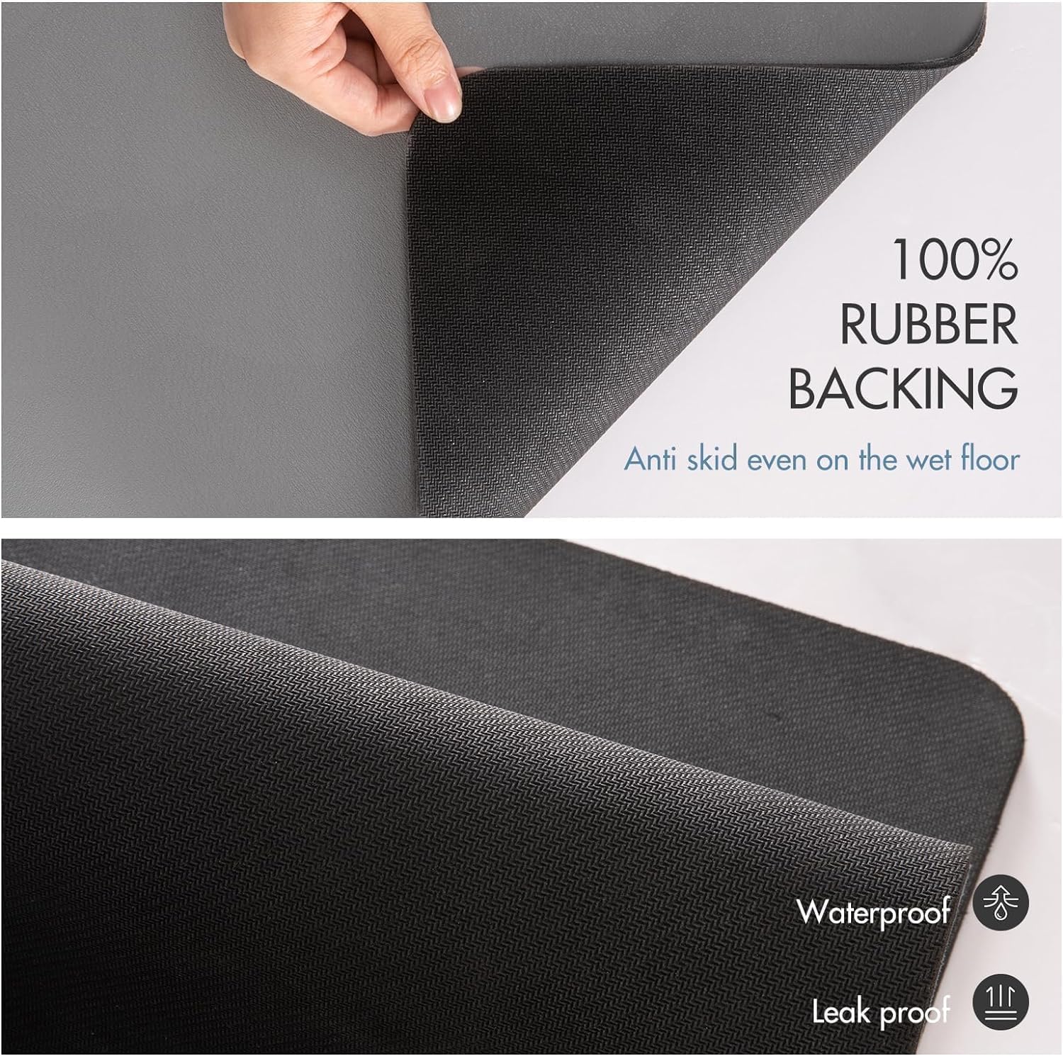 Not only is our kitchen floor mat comfortable, but it is also practical and easy to maintain. With its waterproof surface, spills and stains are easily wiped away, protecting your floors from damage. Cleaning is a breeze, so you can spend more time enjoying your culinary adventures and less time worrying about messes. Made with premium quality materials, our anti fatigue mat is built to last. It is resistant to wear and tear, ensuring durability even in high-traffic areas of your kitchen. Our kitchen rug and runner sets come with non-skid bottom, they are not easy to remove so that you can focus all your energy to enjoy the cooking time.