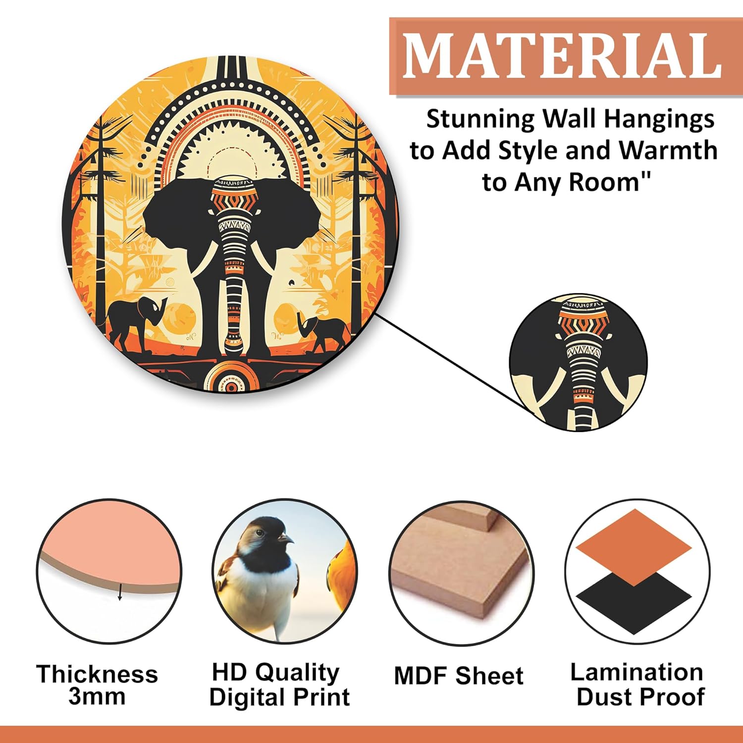 Elevate your home décor with this stunning wall hanging. Crafted from top-of-the-line MDF material, it offers both style and durability. The self-adhesive design makes installation a breeze, allowing you to effortlessly transform any room in minutes. Experience the perfect blend of beauty and functionality with this premium-quality piece.