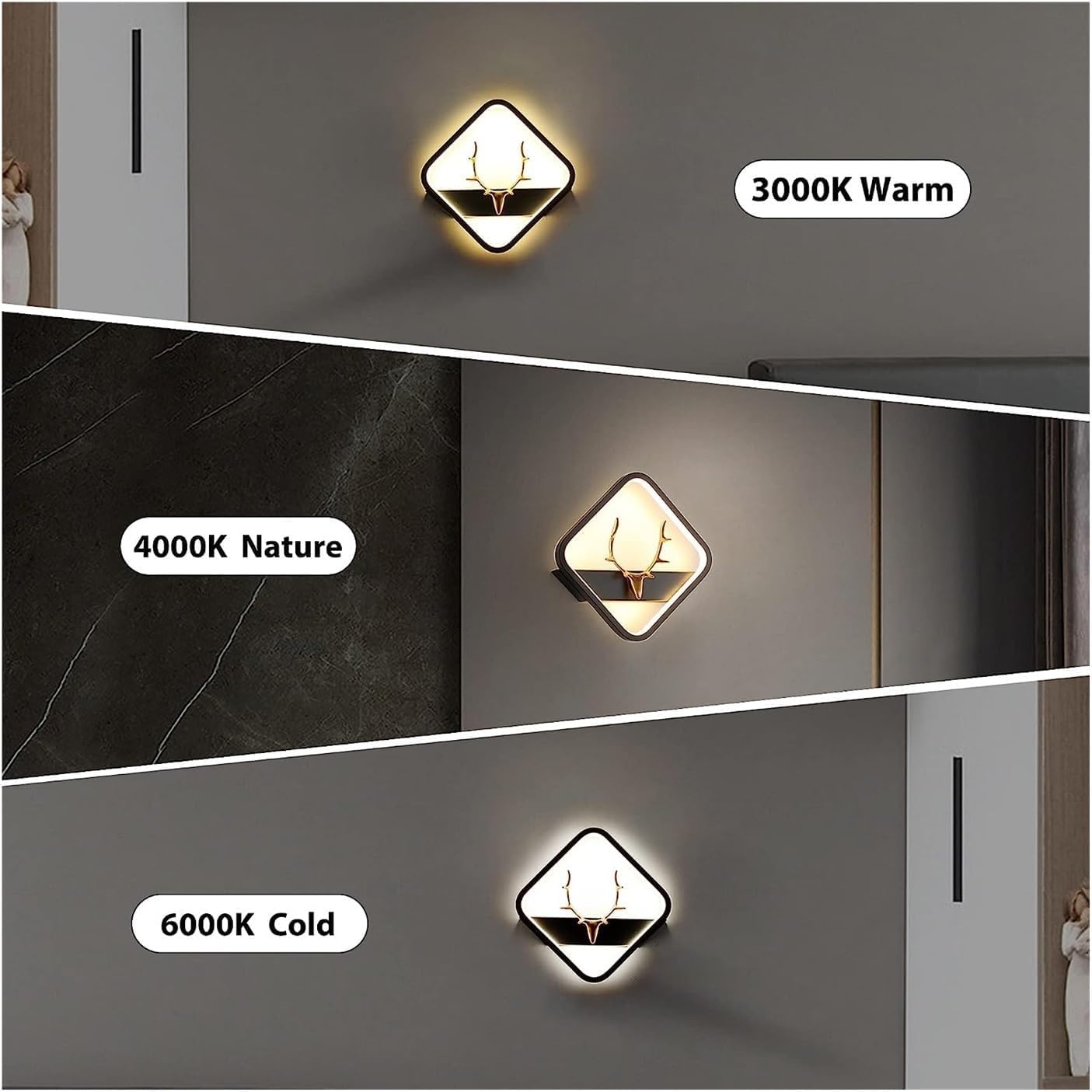 Desidiya Deer Face LED 3 Color Home Decor Fancy Indoor/Outdoor Decorative Lights for Bedroom, Black Square Pendant Light for Home Creative Flush Mount Wall Lamp for Hallway & Interior - Pack of 1